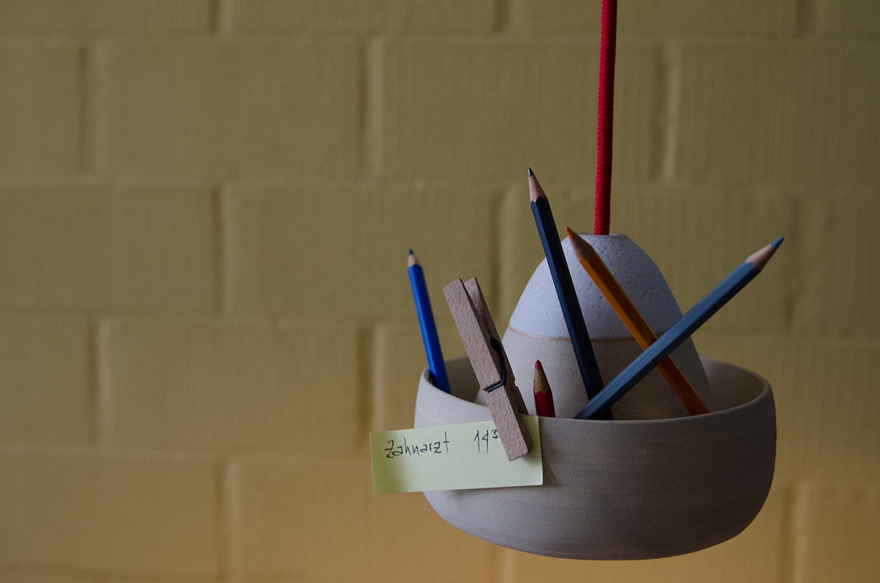 There is more than just a bulb in these sombreros: From the rim of the lamp shade everyday objects are quickly at hand. Thanks to the simple appearance it is suitable in different surroundings.